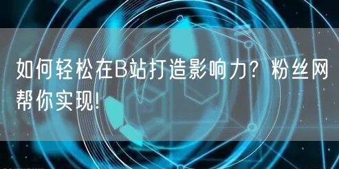 了解如何使用粉丝网提升B站影响力,掌握社交媒体推广策略,增加观众互动,提高曝光率。本文为您详细介绍粉丝网的使用方法和技巧...